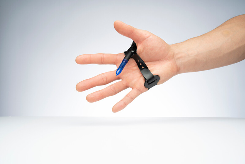 To assist these patients, the Assistive Technology team sought out to design and fabricate a stylus holder — designed as a wrist strap with a slot — to help patients